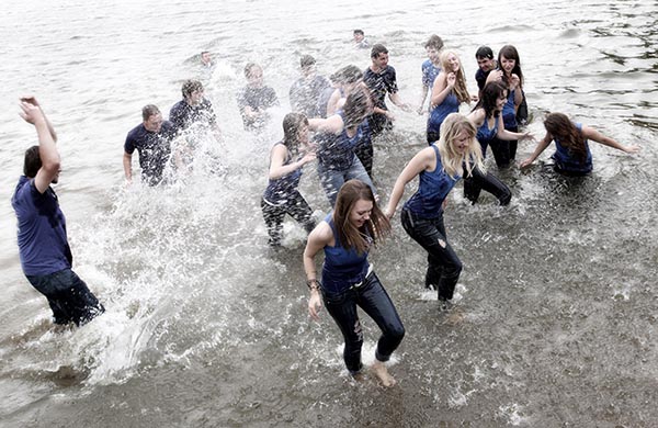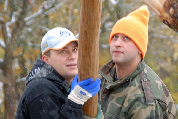 Samstagnachmittag: Der Kirwabaum wird aufgestellt.