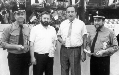 Vorstand Werner Ciesielski (Vorstand von 1975 - 1990) mit den Schirmherren Bgm. Karl Pühl und MdL Otto Benner sowie Kommandant Georg Matthes. |